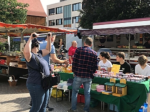 Dort werden Produkte, die im Unterricht hergestellt werden, auf dem Wochenmarkt verkauft.