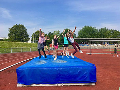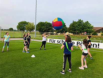 Bevor die Wettkämpfe starteten, hat Frau Klein noch die letzten Anweisungen gegeben. Das war wichtig, denn auch dieses Mal gab es wieder die sogenannten Fun-Games. Bei den Fun-Games ging es weniger darum Rekorde aufzustellen, sondern vielmehr um den Spaßfaktor in Disziplinen wie beispielsweise Wasserbombenlauf oder Kin-Ball.