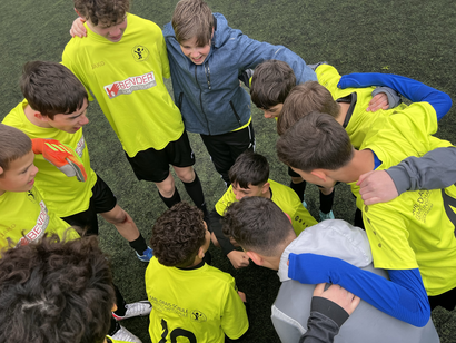 Im zweiten Spiel gelang es uns tatsächlich, ein Tor zu erzielen und damit das Spiel für uns zu entscheiden - eine Überraschung für uns alle. Im dritten und letzten Spiel erreichten wir ein Unentschieden. Besonders erfreulich war zu beobachten, wie sich die Schülerinnen und Schüler im Laufe des Tages verbesserten und zunehmend Initiative - sowohl in der Abwehr als auch im Angriff auf dem Feld - zeigten. Trotz des schlechten Wetters hat uns die Teilnahme viel Spaß gemacht, und es war eine tolle Gelegenheit, die Schülerinnen und Schüler in einem anderen Kontext kennenzulernen.