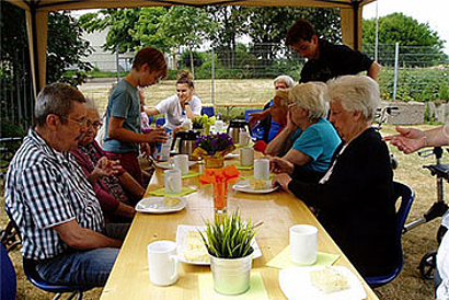 Mit selbst gebackenem Kuchen, frischem Kaffee und einigen Spielen überraschten die Schülerinnen und Schüler der AES-Lerngruppe 7a die Senioren aus unserer Nachbarschaft. Für die Bewohner des Altenpflegeheimes „Haus am Seeweg“ eine willkommene Abwechslung, für die Jugendlichen eine besondere Art der Begegnung und für alle ein kurzweiliger Nachmittag.