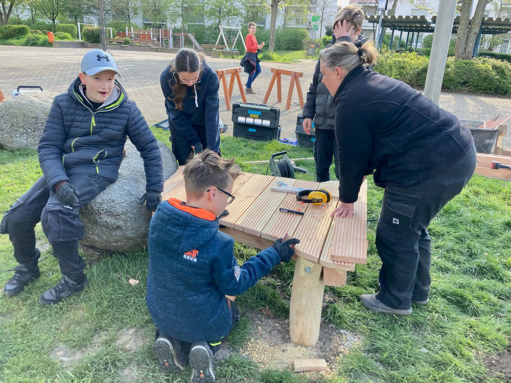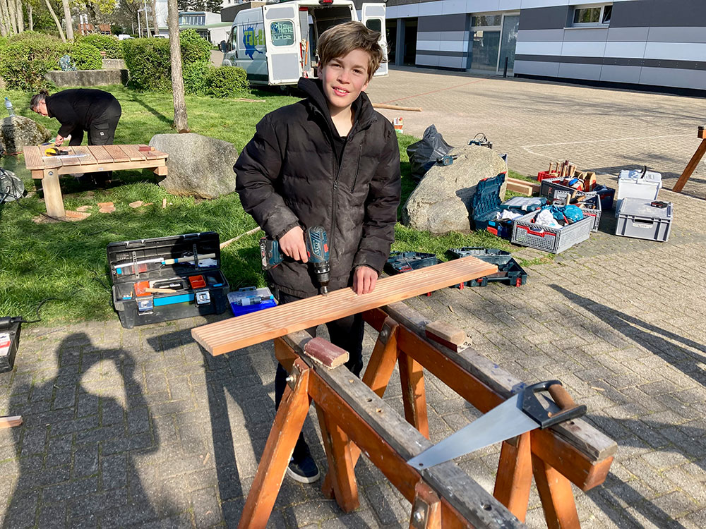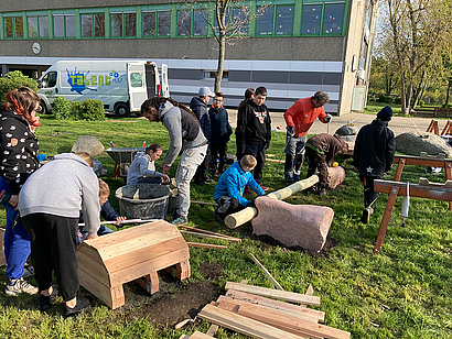 Nachdem es im Vorfeld bereits einen spannenden Planungstag gegeben hatte, an welchem die Schülerinnen und Schüler sehr motiviert und kreativ Modelle für den Parcours bauten und einander vorstellten, wurden nun die realisierbaren Vorschläge in die Tat umgesetzt.