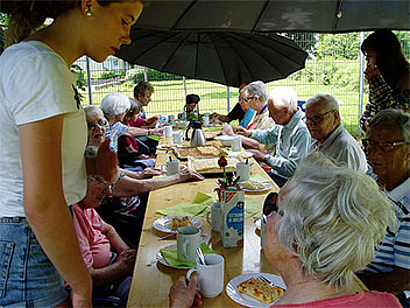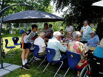 Erneut trafen sich am 03.06.2019 die Senioren vom "Haus am Seeweg" mit den Schülerinnen und Schülern der AES-Lerngruppe 8b zum "Kaffeeklatsch im Schulgarten".